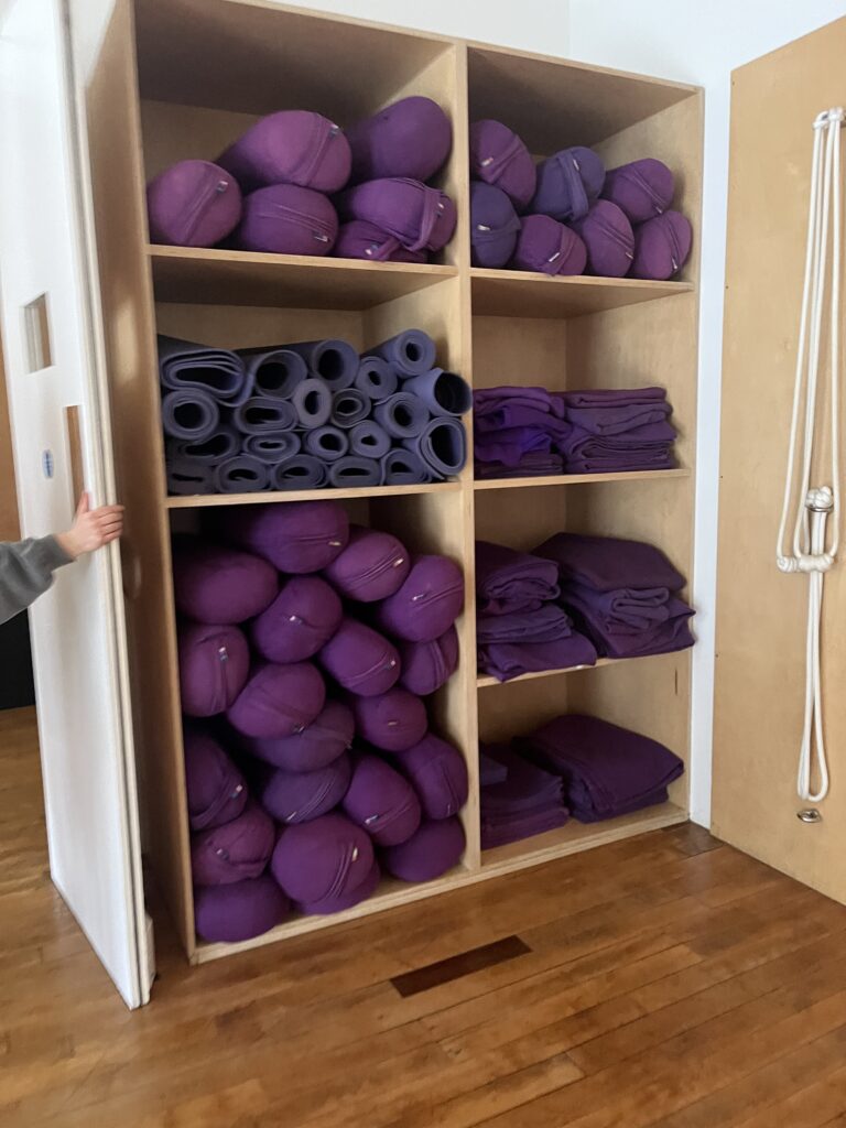 マットは年季が入っていて滑りながらダウンドッグに苦戦してたらイントラさんが粉をくれた。