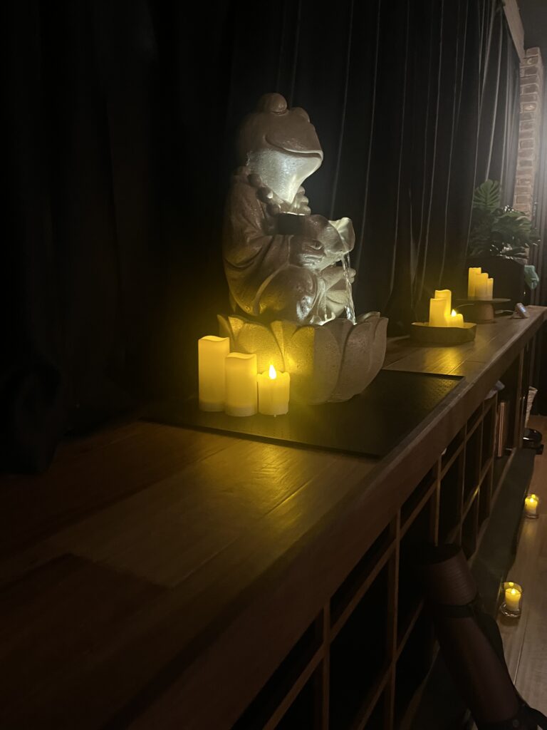 クリスタルボールなど、いくつかの楽器を使って音をだしていたんだけど、音の振動が身体に伝わって、かなり不思議な感覚だった。音の効果を感じる、リラックスできるクラスだったと思う。