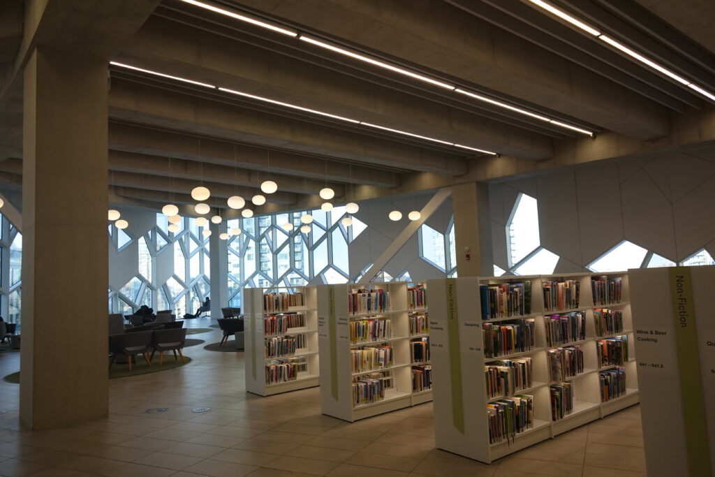 カルガリー公共図書館は、建物としての存在感がありつつ、気負わず入れる、開放的な公共図書館でした。