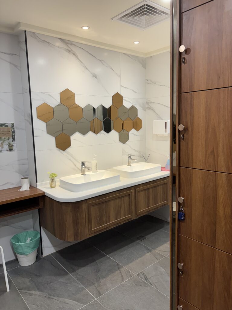 2階に男女別のトイレとロッカー、3階に女性用シャワールーム(トイレ、ロッカー付)、4階に男性用シャワールーム(トイレ、ロッカー付)がある。