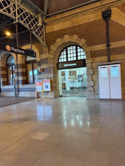 シドニーのセントラル駅発、駅の一番端のプラットフォーム1番からの発車だった。